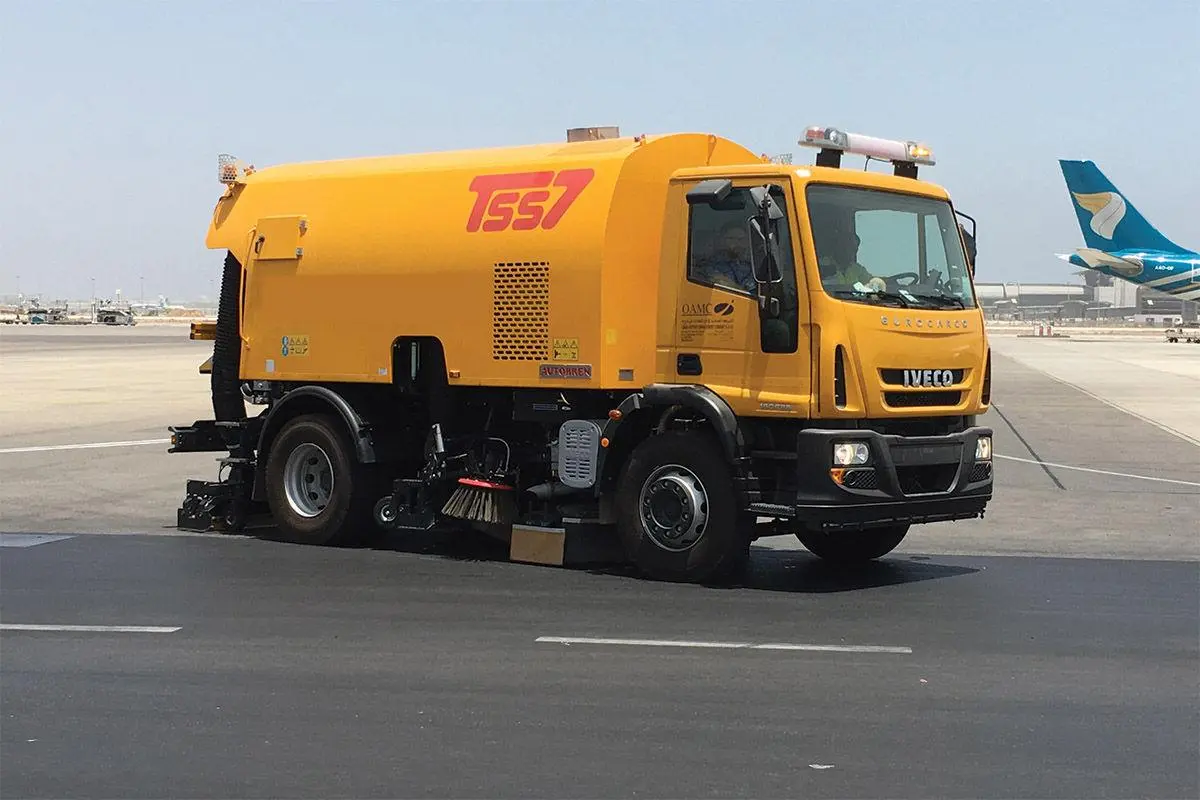 These machines are widely used across global airports and are known for their high-speed performance (up to 45 km/h) and efficient debris removal systems.